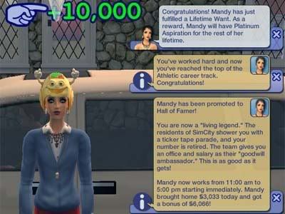End week accomplishments: Mandy promoted to 2nd TOC Athletics, Randy promoted to 2nd TOC Natural Sciences & achieves IW of §100k, Sakura has 7 Dream Dates and goes off to University, Kara transitions to teen, Arik transitions to toddler